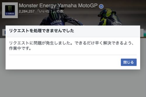 Facebook には「ページ」などというアレなものがありまして、それを Web サイトに埋め込めるわけです。 Monster Energy Yamaha MotoGP こんな感じで。 んで、ここのところそこに「リクエストを処理できませんでした」ってなメッセージがでるようになってしま…